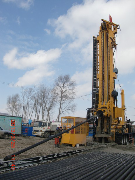 CMD100型车载钻机应用情况,大口径空气潜孔锤钻进。