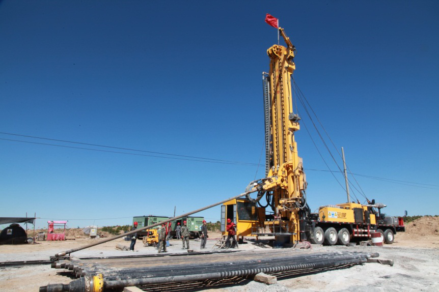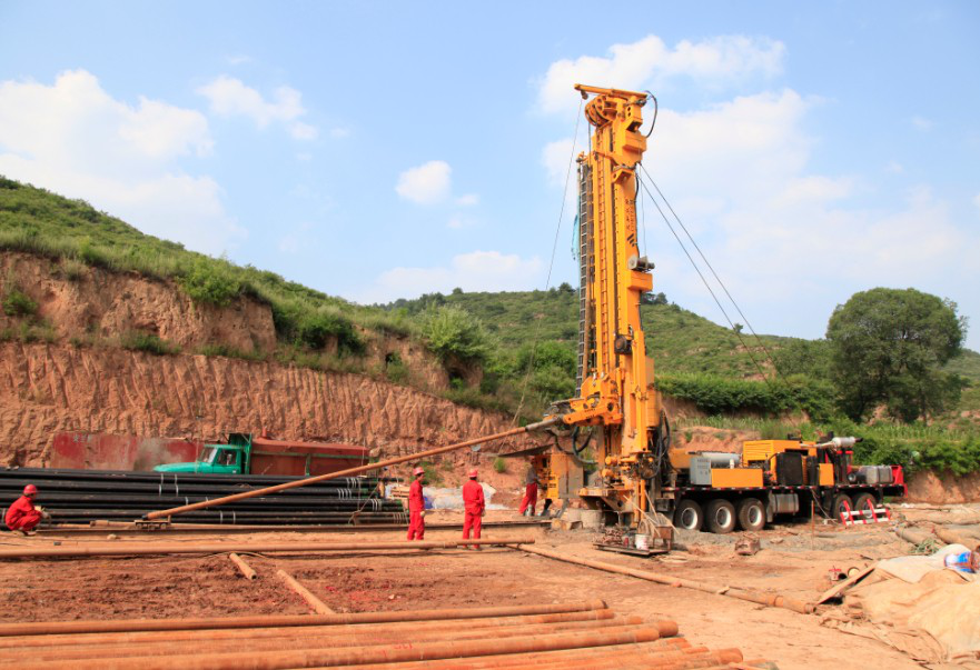CMD100型车载钻机,返井钻进施工。